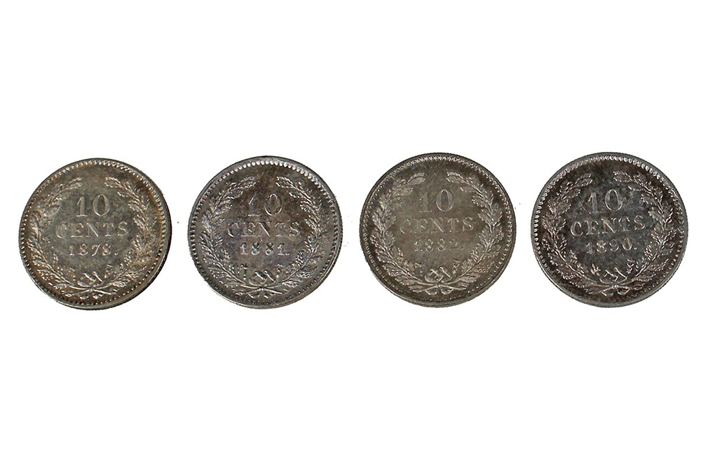 Lot (4) 10 Cents 1878, 1871, 1882 en 1890 Sch. 656-665 Ruim prachtig