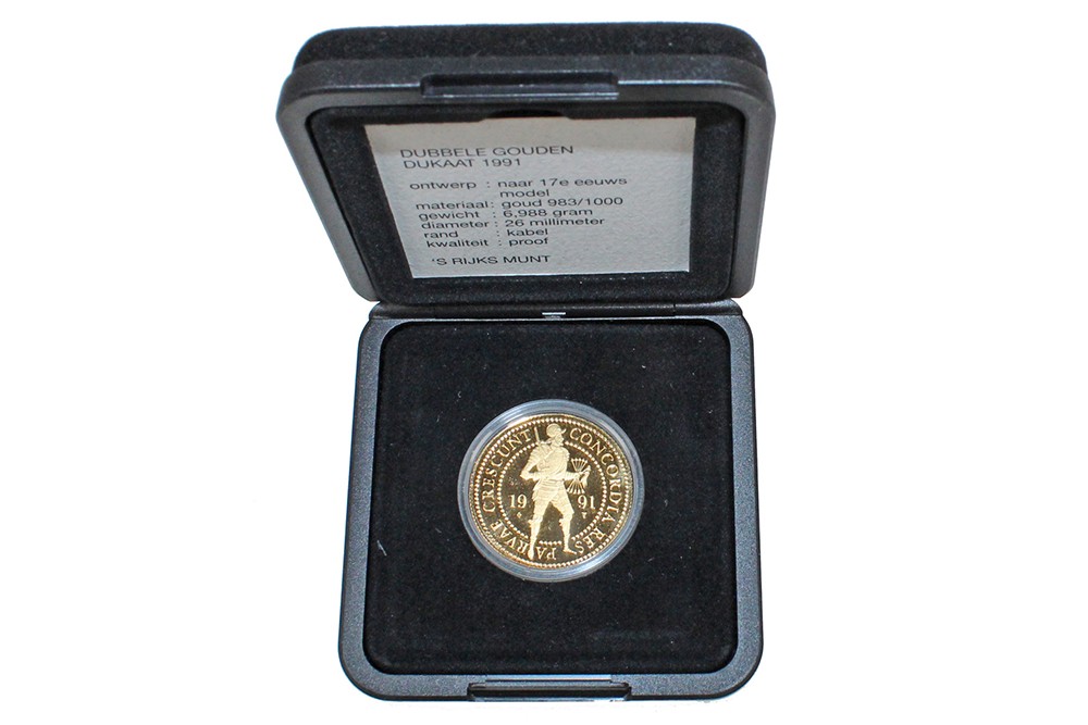 Dubbele gouden dukaat 1991. Proof in cassette.