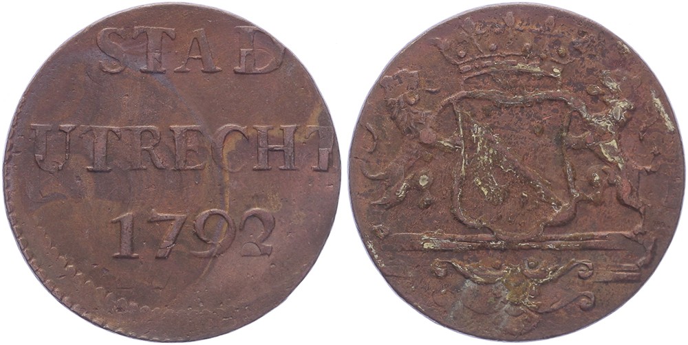 Duit 1792 Stad Utrecht, jaartalzijde iets decentrisch.