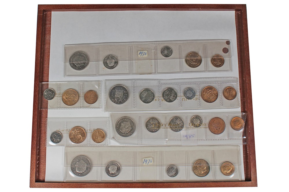 Lot (6) FDC-sets 1973, 1974 en 1975. Elk 2 x in plastic strip met- en zonder opdruk.