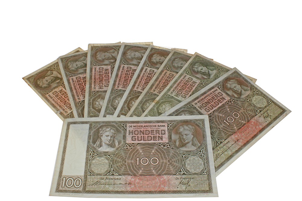 Lot (9) 100 Gulden 1939 t/m 1944. Mev. 117. Diverse kwaliteiten.