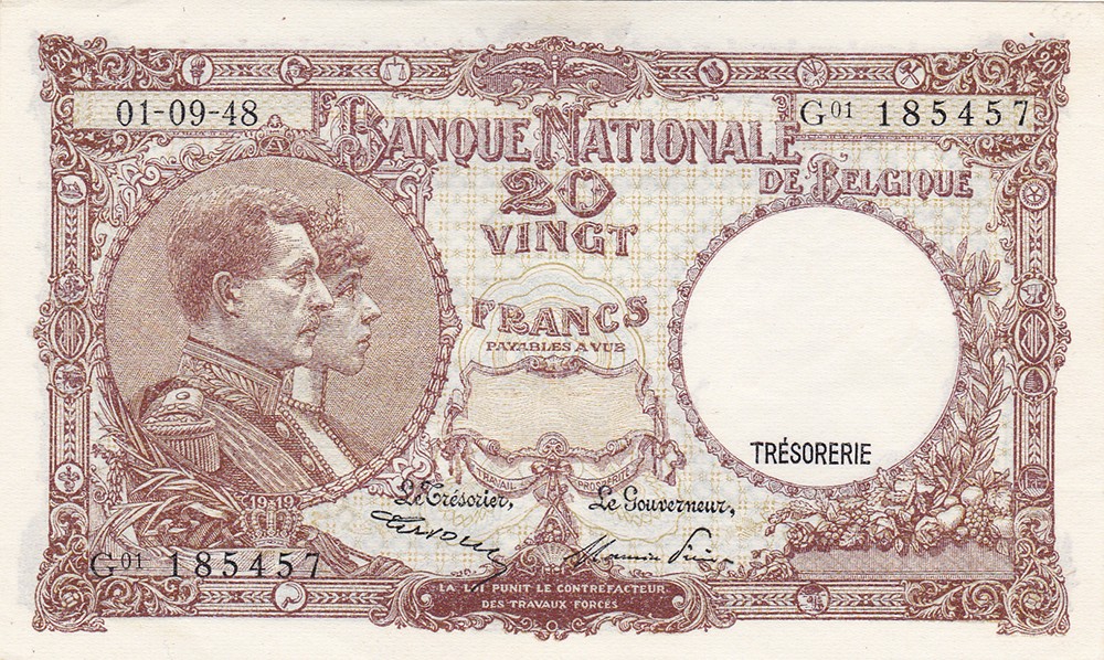 20 Francs 1-9-1948 [# G01 185457]. LA-BFB-27; Pick 116. Prachtig.