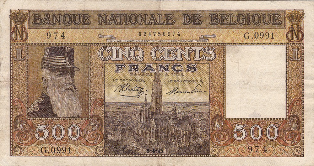 500 Francs 6-4-1945 [# G 0991 974]. LA-BFB-81; Pick 147. Fraai / Zeer fraai.