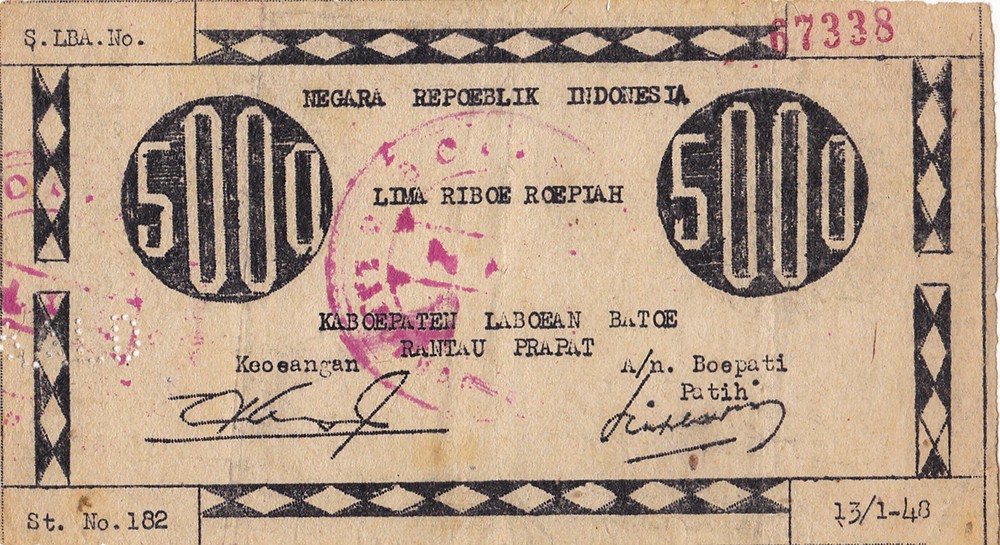 Rantau Prapat. 5000 Rupiah 1948. P-S 366b. Fraai.