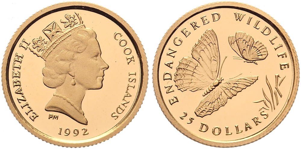 25 Dollars 1992 Butterfly. Fr. -; KM 243. Au999. Proof.