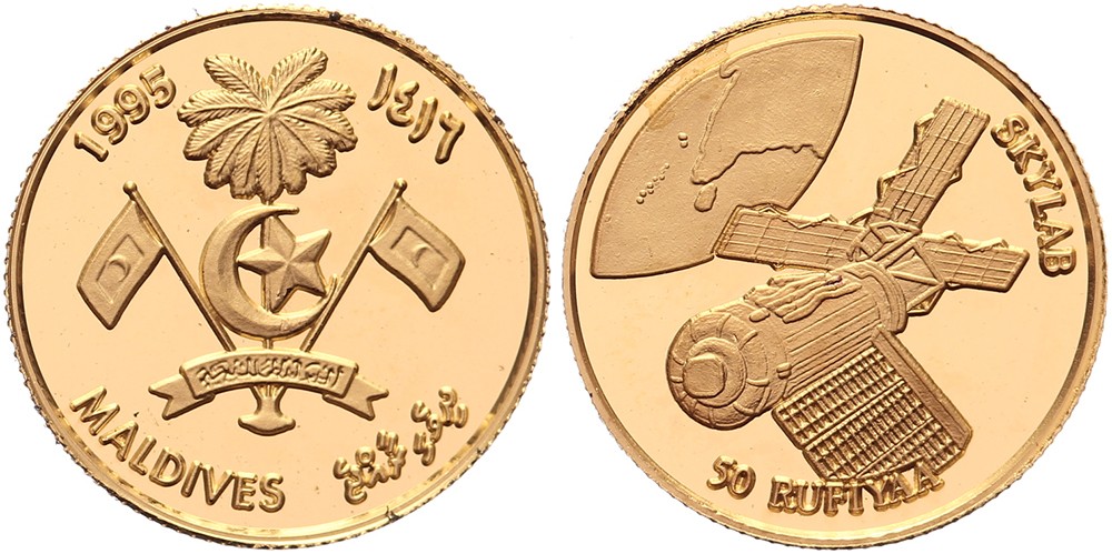 50 Rufiyaa 1995 Skylab Space Station. Fr. 7; KM89. Au999. Proof.