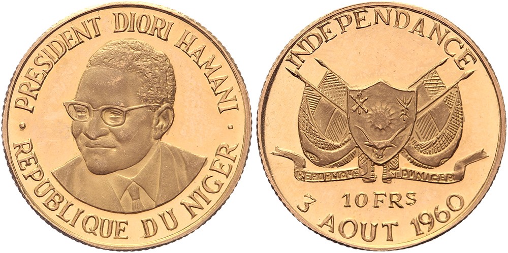 10 Francs 1960 President Hamani. Fr. 4; KM 1. Proof.