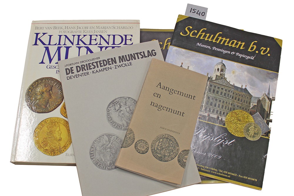 Lot (5) diverse boekjes en prijslijsten, o.a. De Driesteden Muntslag Deventer-Kampen-Zwolle en Aangemunt en nagemunt.