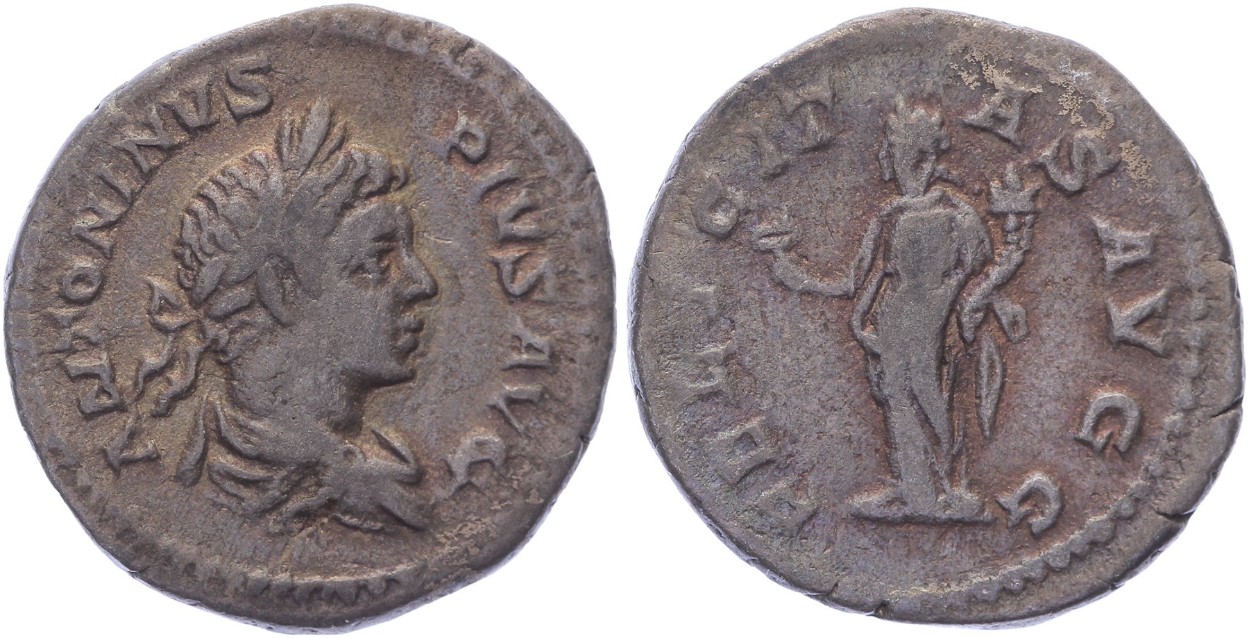 AR Denarius (3.14 gm, 19mm). Rome mint. Struck 205-206 AD. Laureate and draped bust right / Felicitas standing left, holding caduceus and cornucopia. RIC IV 127; RSC 64. Toned VF.