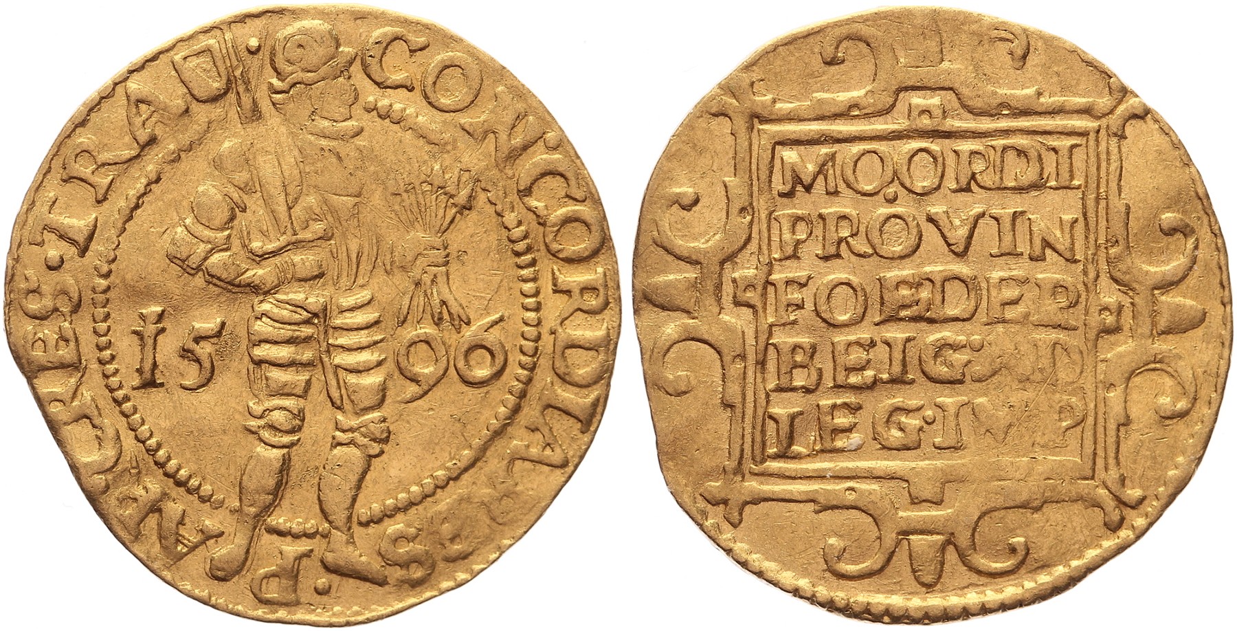 Dukaat 1596. Delm. 963; CNM 2.43.42; HPM 24 [3,48 gram]. Zeer fraai.