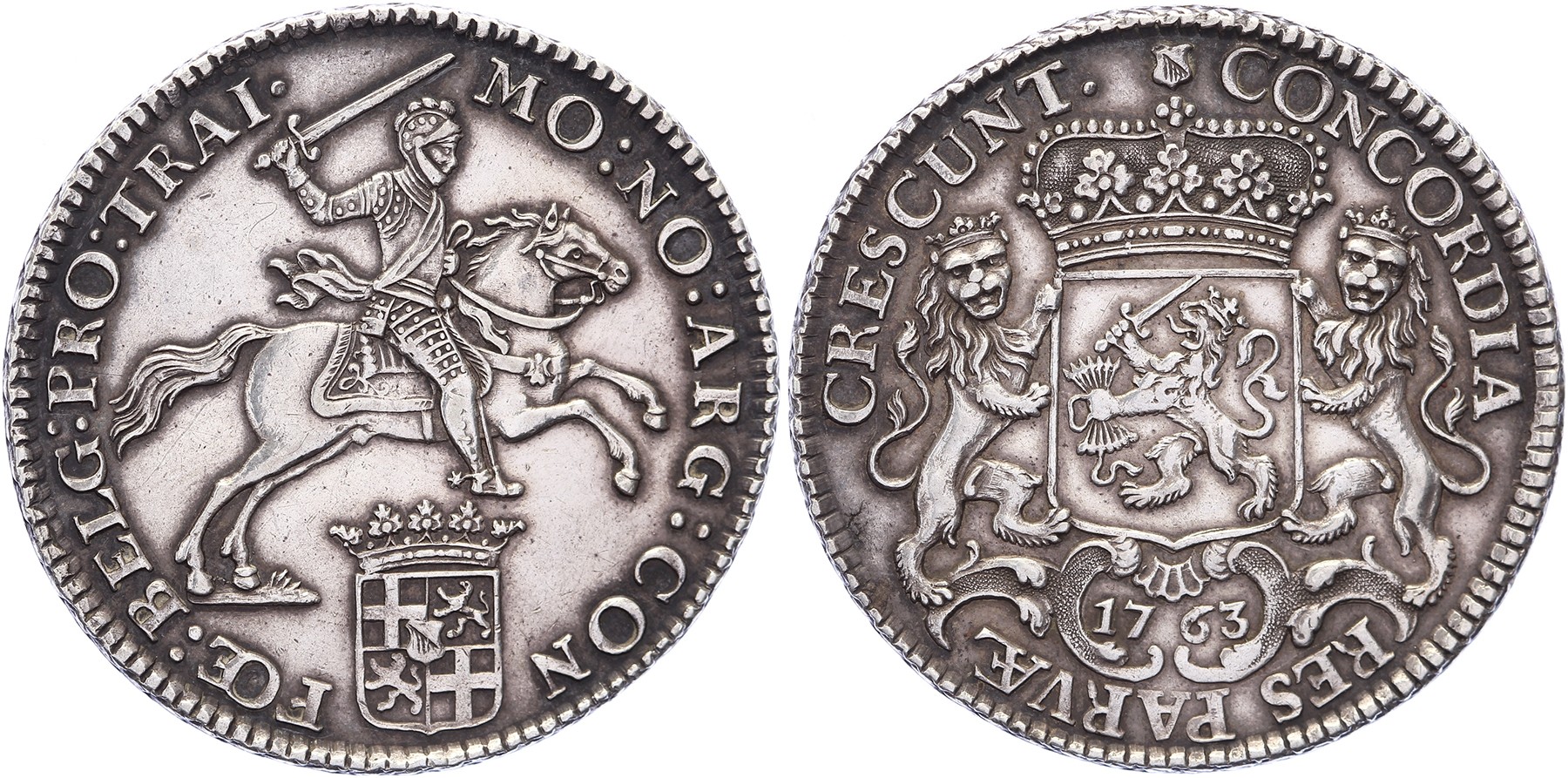 ½ Rijder of ½ dukaton 1763, bloemrand. Delm. 1055; CNM 2.43.106; HPM 60. Ruim zeer fraai.
