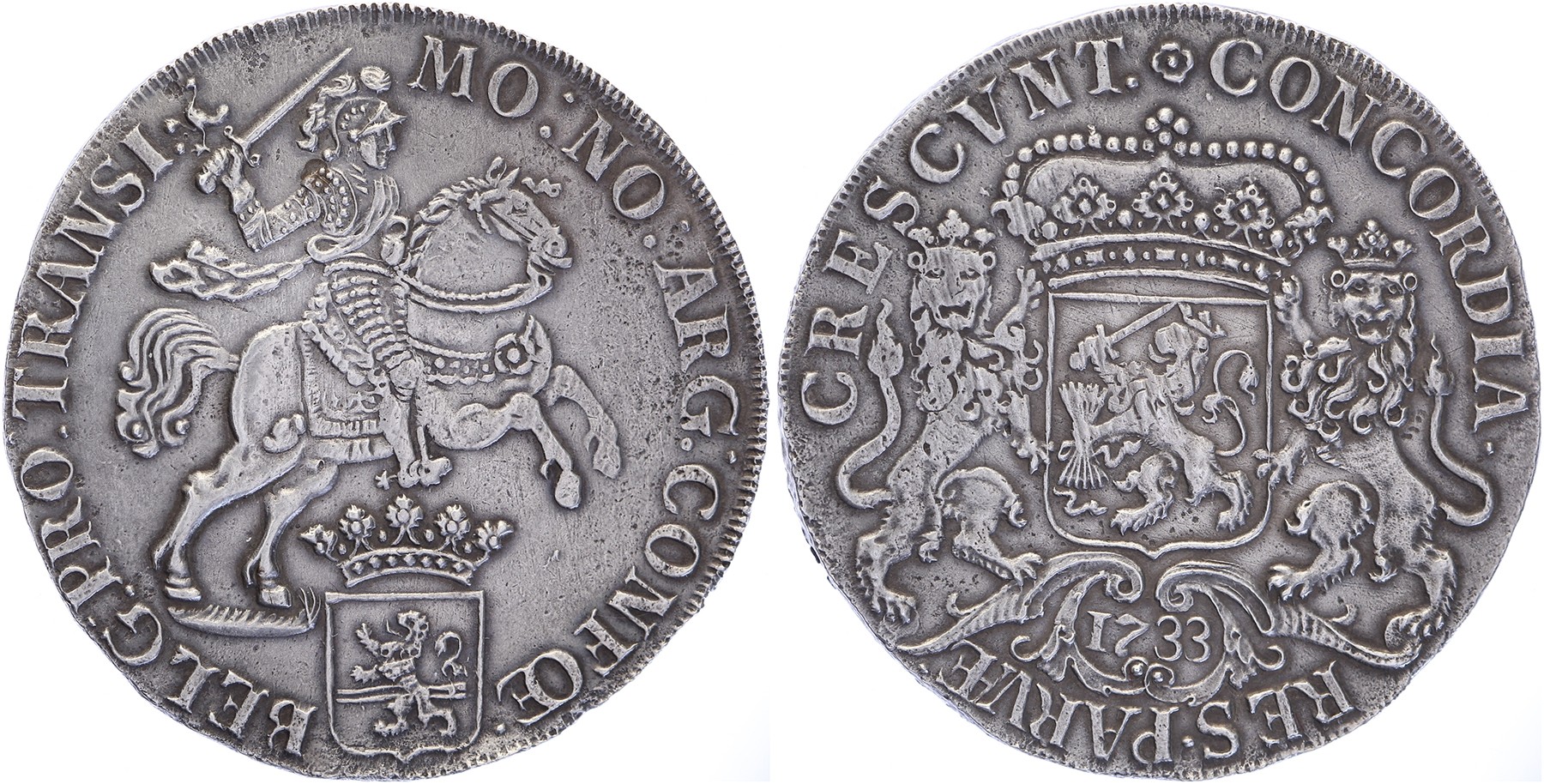 Rijder of dukaton 1733. Delm. 1036; CNM 2.38.79; HPM 49. Uit het schip ‘Het Vliegend Hert’. Prachtig.