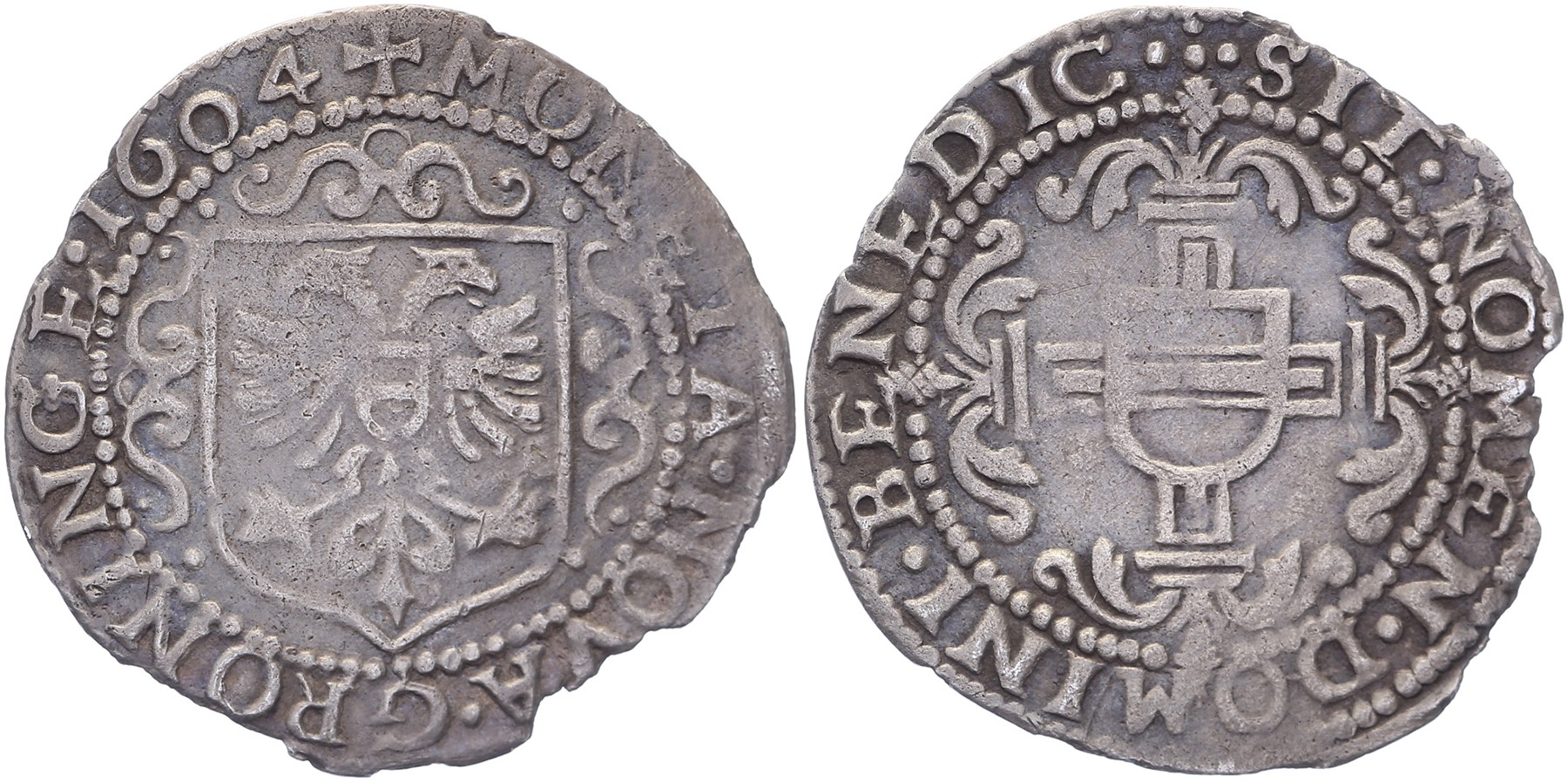 Jager van 2 stuiver 1604, mmt. kruis. Verk. 186.4; CNM 2.21.46; HPM 12. Ruim zeer fraai.