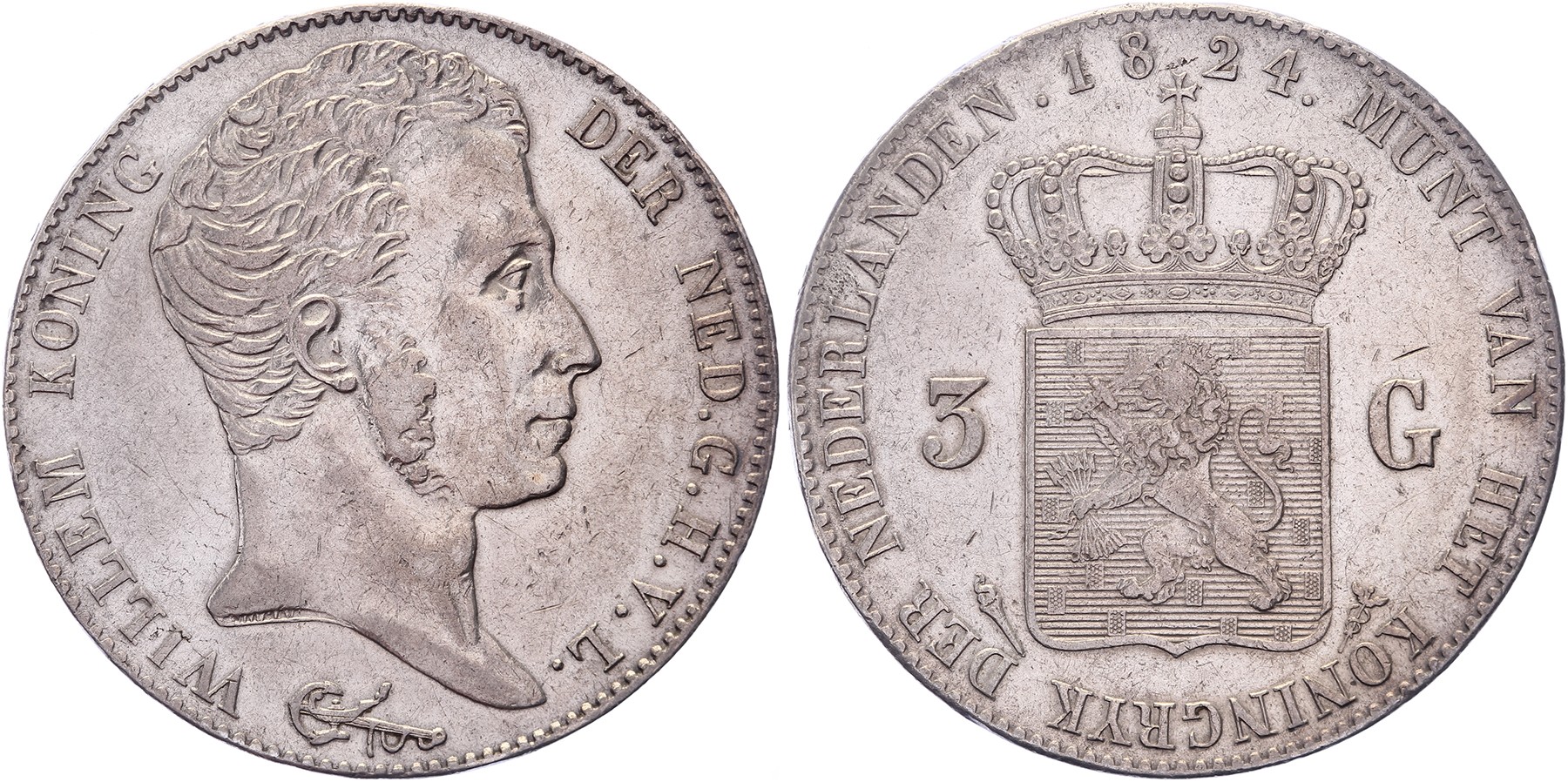 3 Gulden 1824 Utrecht mmt. fakkel Sch. 246 Ruim zeer fraai