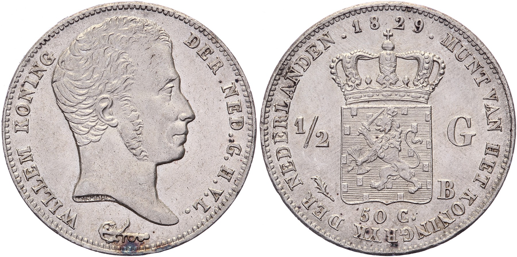½ Gulden 1829 Brussel mmt. palmtak Sch. 282 Ruim prachtig