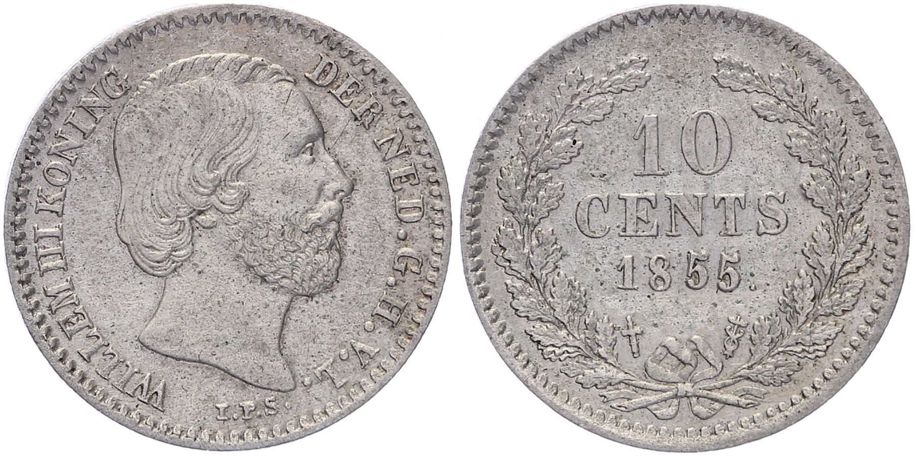 10 Cents 1855 mmt. zwaard Sch. 643 Ruim zeer fraai