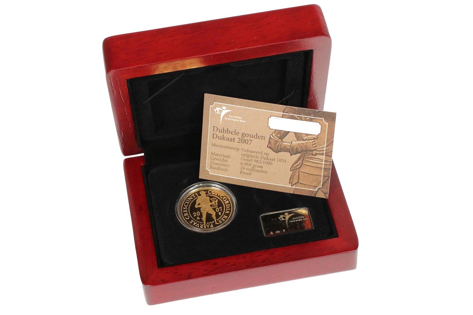 Dubbele gouden dukaat 2007. Oplage 2.000. Proof in cassette.