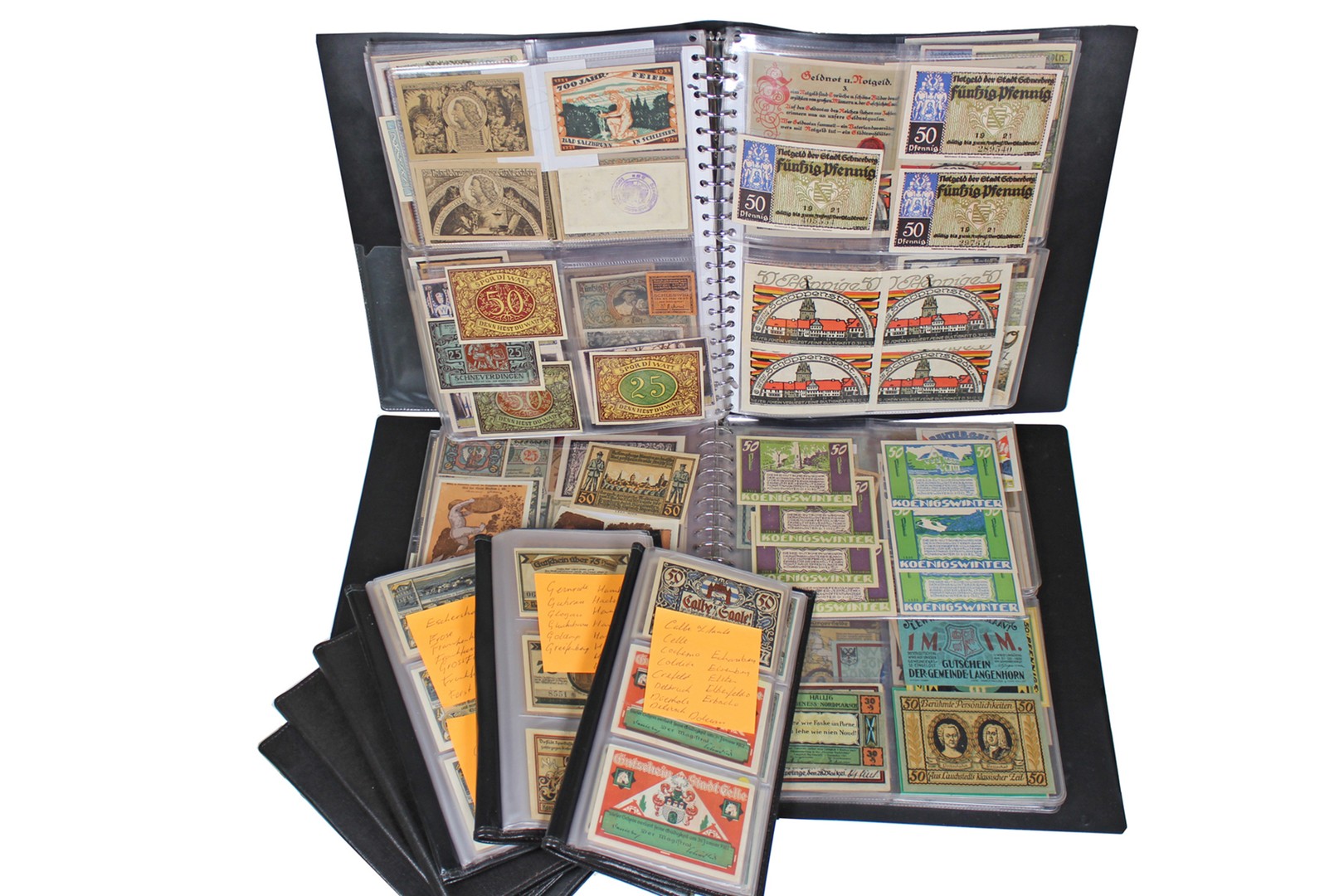 Lot (8) Collectie Duits noodgeld in 2 zwarte ringbanden en 6 BRN-mapjes. Bestaande uit ca. 600 biljetten van A t/m Z, o.a. Reuter – Geldscheine. Veelal UNC.