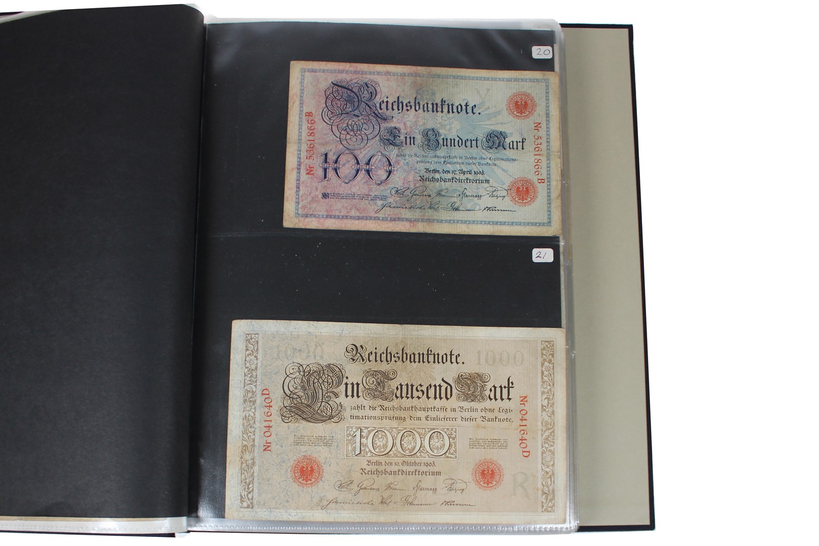 Lot (8) Vrij complete collectie Duitse bankbiljetten verzameld volgens Rosenberg op catalogusnummer in 3 albums, ca. 1250 biljetten. H. Rosenberg nr. 17-74; 75-106; 107-828. Toegevoegd: 4 albums met uitbreidingen op deze collectie. Goed nazien!