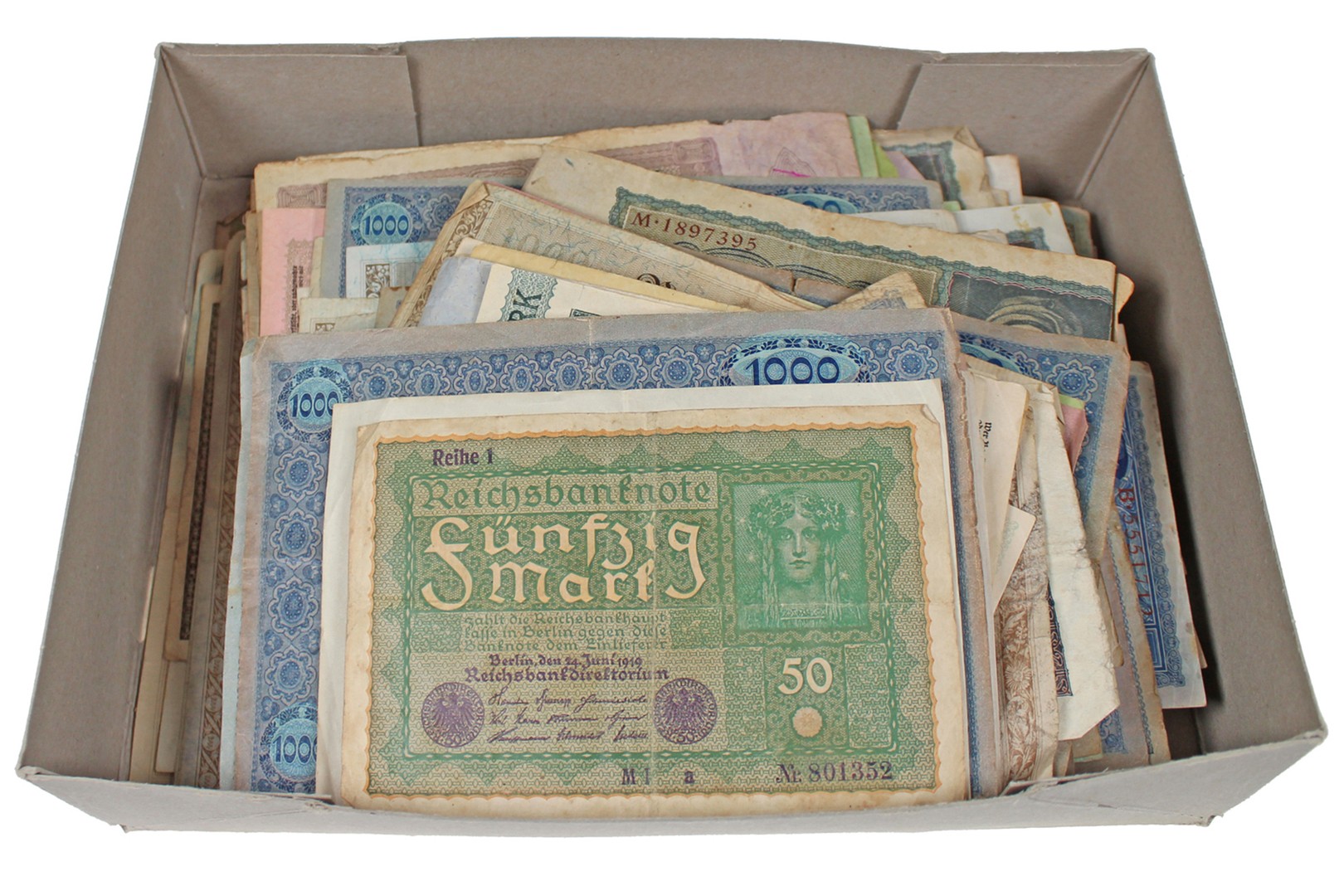 Grijze doos met inflatiegeld Duitsland/Oostenrijk, circa 0,69 kg.