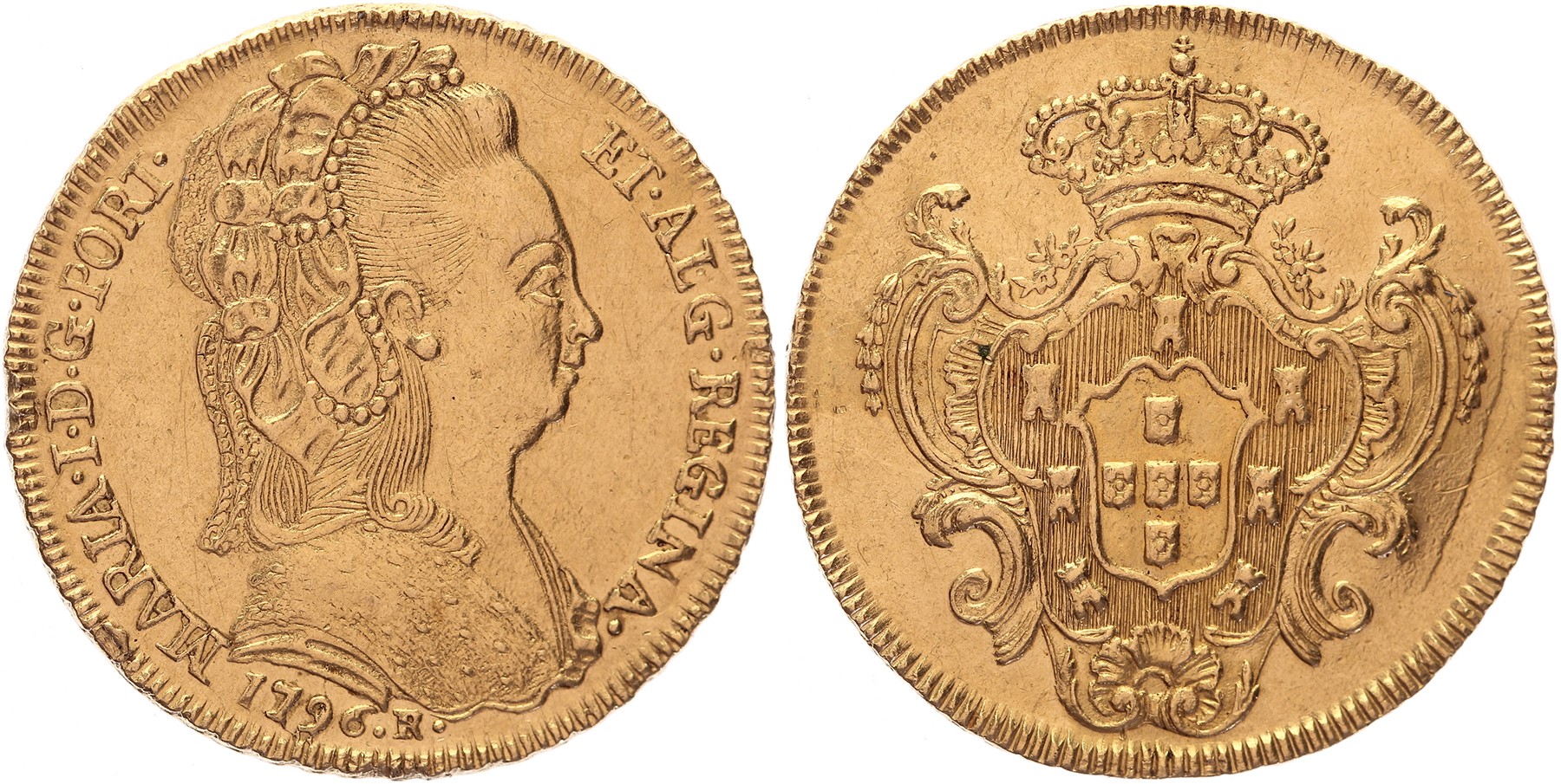 6400 Reis 1796, Rio. Fr. 87 [14,27 gram]. Slightly cleaned. VF / XF.