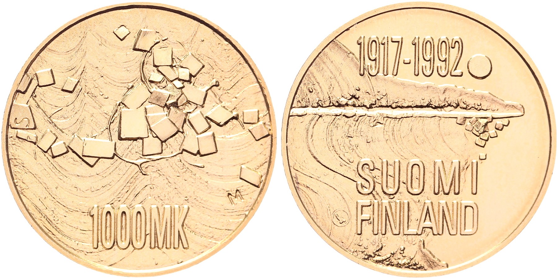 1.000 Markkaa 1992 Landscapes, modern designs. Fr. 9. Proof.