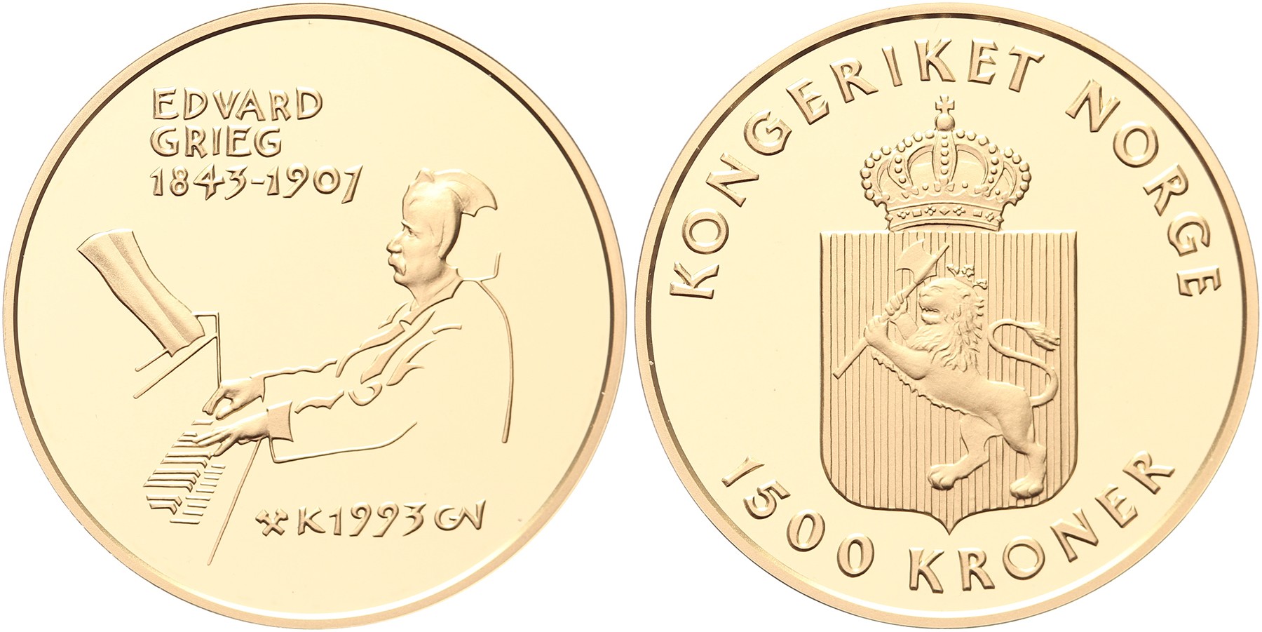 1.500 Kroner 1993 Edvard Grieg 1843-1907. Fr. 27. Proof.