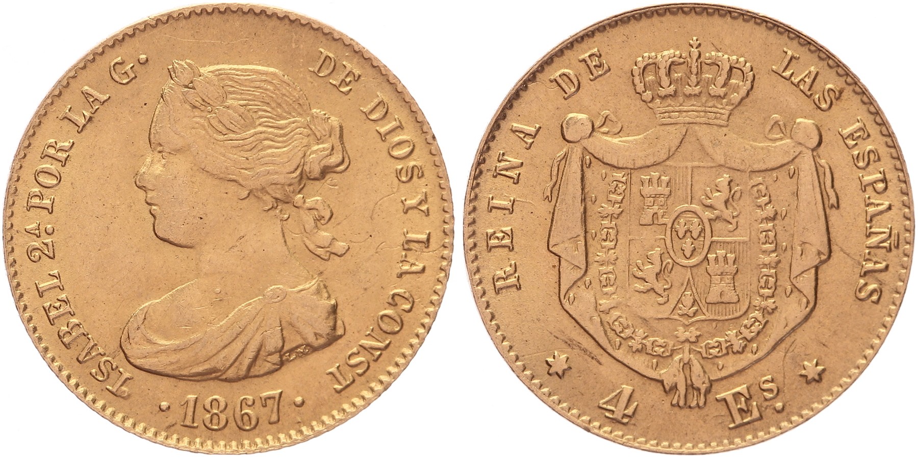 4 Escudos 1867, 6-pointed star. Fr. 337; KM 631.4. XF.
