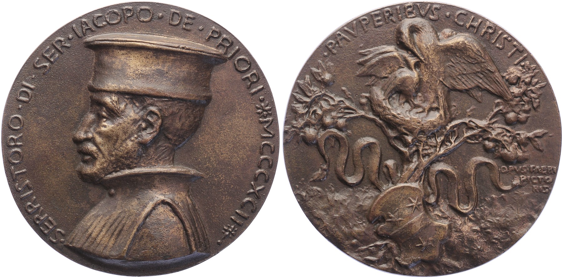 1392. Jacopo de Priori. Naar een schilderij van Fabio Fabbi. Later werk, begin 20e eeuw. Æ gegoten 86,2. Prachtig.