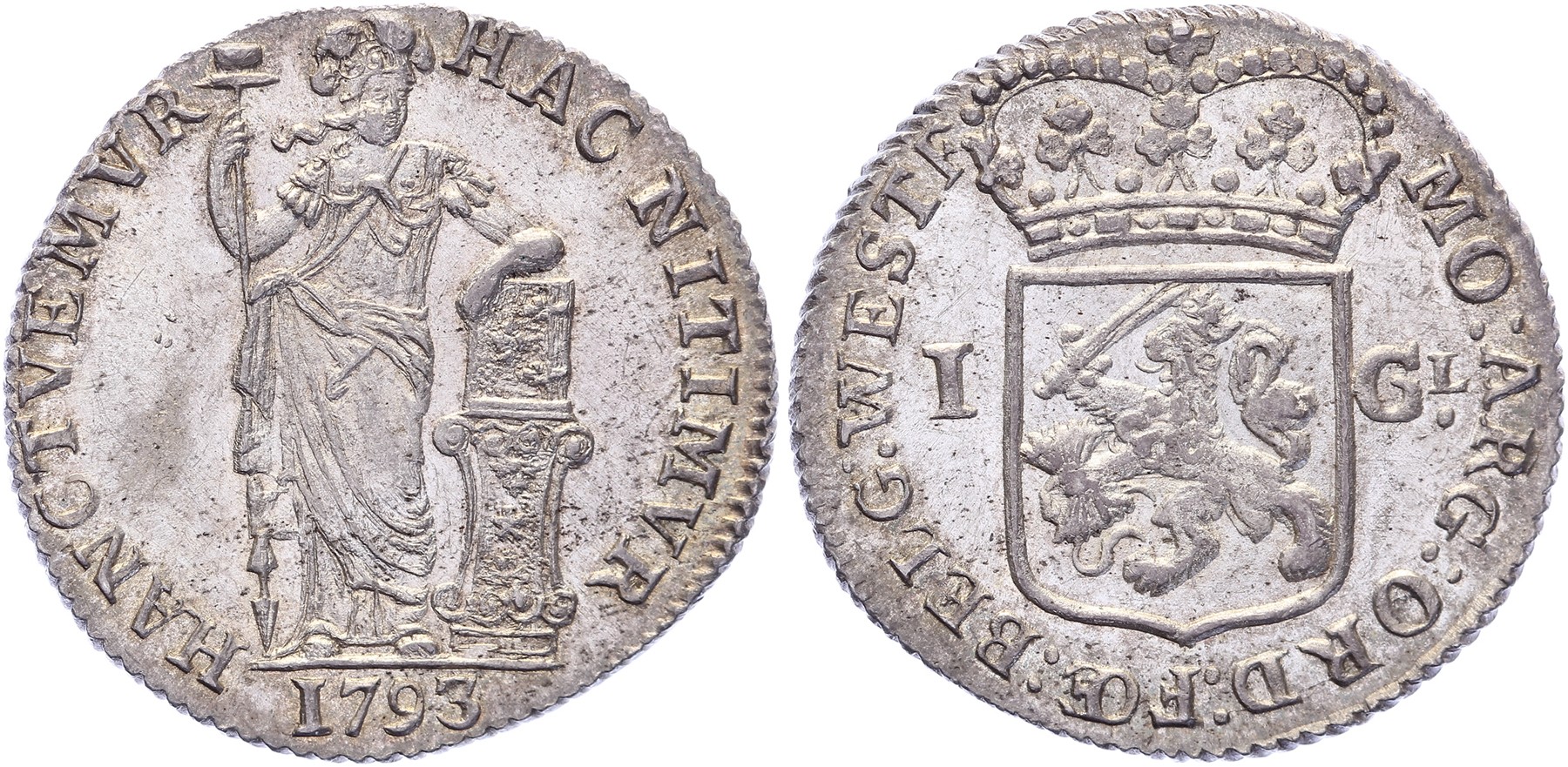 1 Gulden 1793. Delm. 1180; CNM 2.46.57; HPM 48. Mooie kleur. Prachtig / FDC.