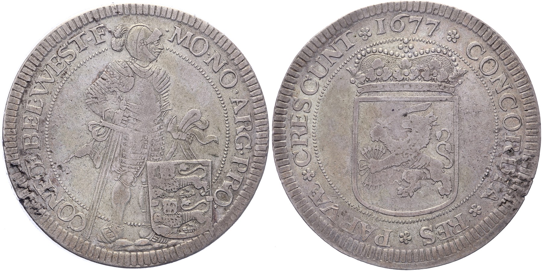 Zilveren dukaat 1677. Delm. 972; CNM 2.15.2; HPM 78. Zeldzaam! Zwakke slag. Zeer fraai.