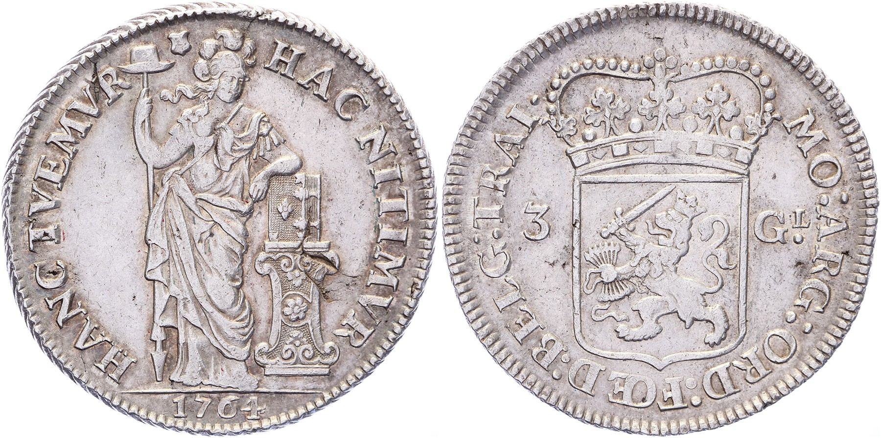 3 Gulden 1764. Delm 1150; CNM 2.43.117; HPM 71. Bijna prachtig.