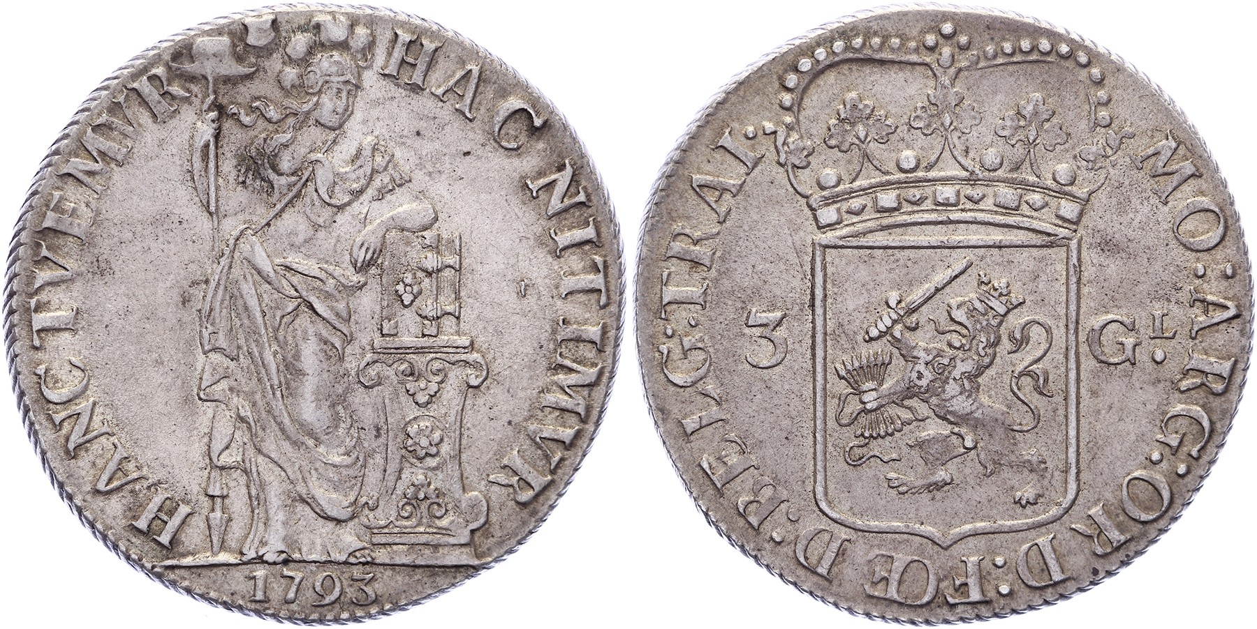 3 Gulden 1793. Delm. 1150; CNM 2.43.117; HPM 71. Ruim zeer fraai / Bijna prachtig.