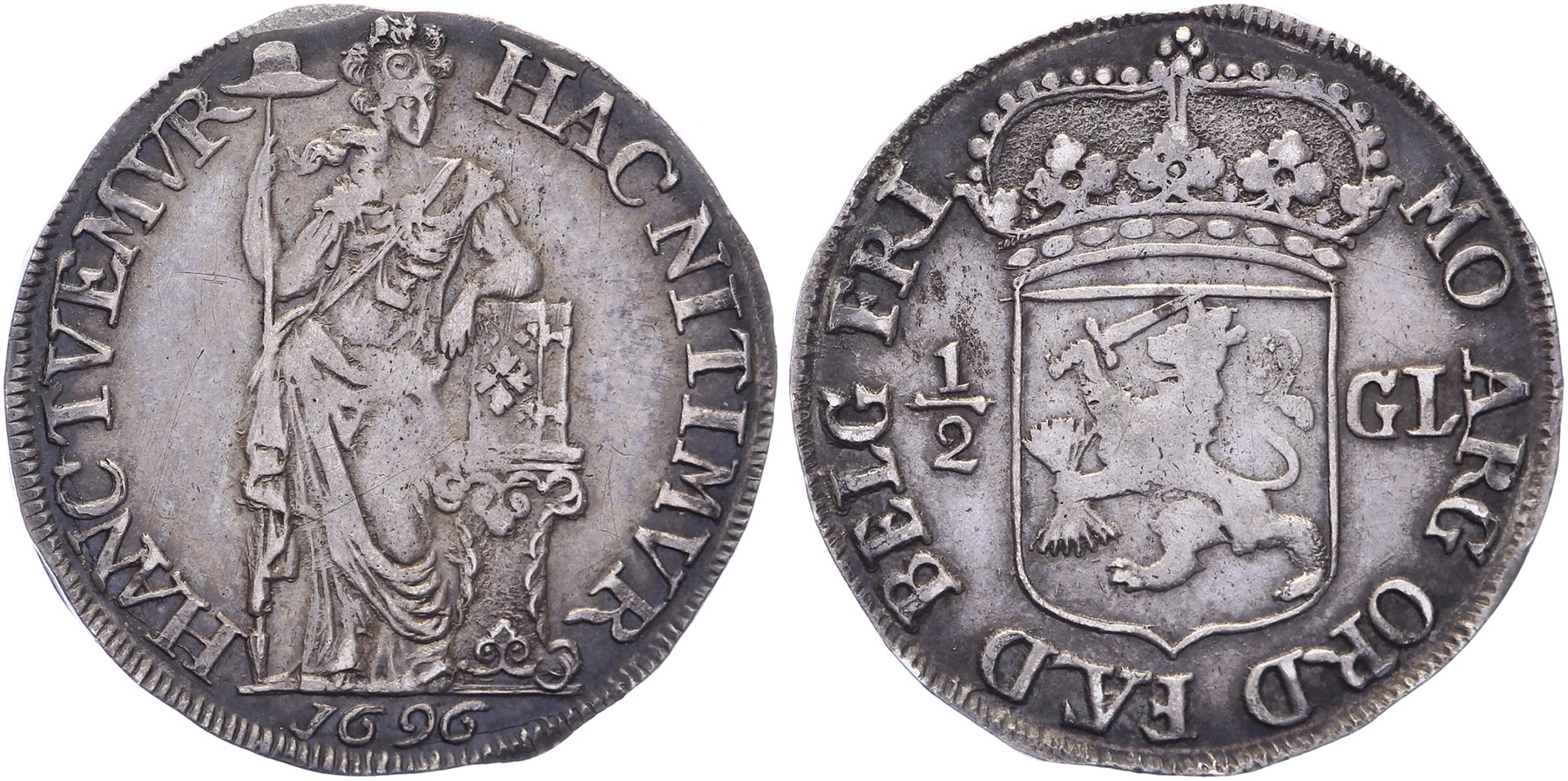 ½ Gulden 1696. Delm. 1205; CNM 2.16.100; HPM 51. Mooi patina. Ruim zeer fraai.