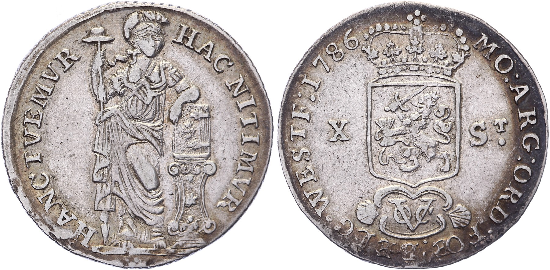 West-Friesland. X Stuiver 1786. Scholten 75a. Beginnend patina. Ruim prachtig.