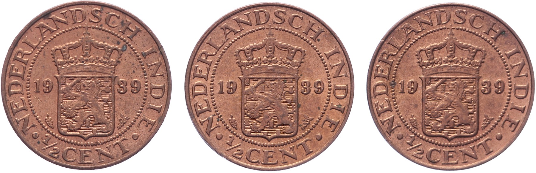 Lot (3) ½ Cent 1939 mmt. druiventros. Scholten 909. Originele kleur. FDC.
