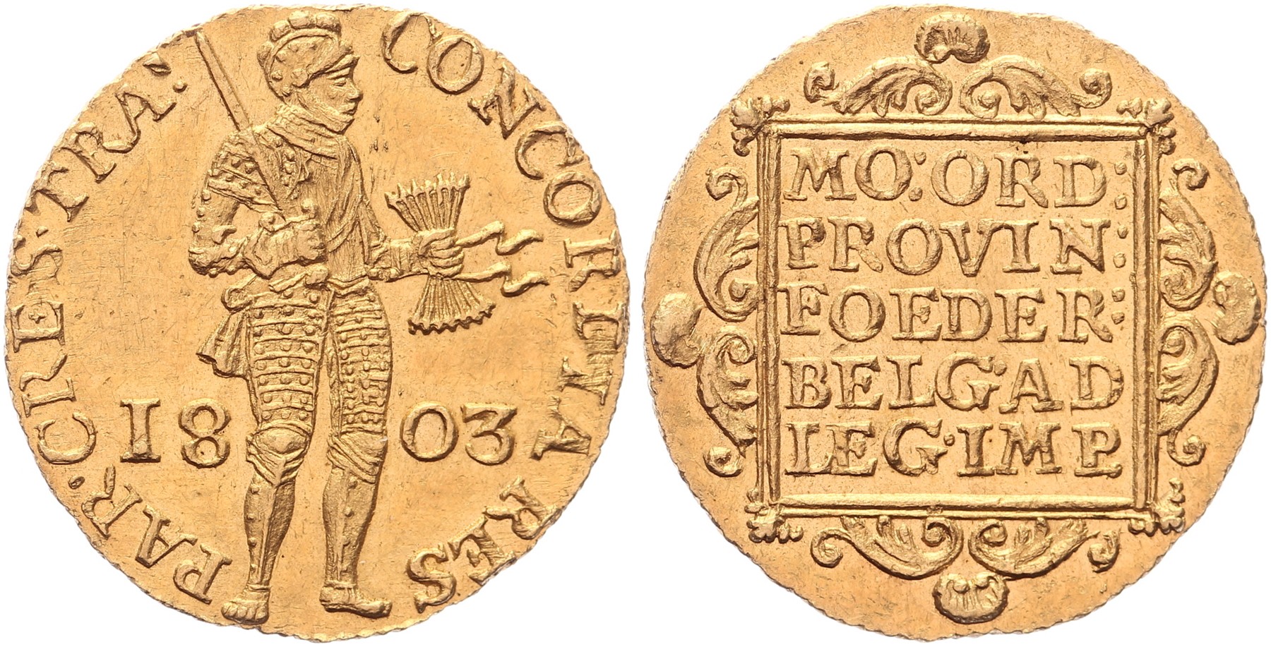 Utrecht. Dukaat 1803. Sch. 39. [3,55 gram]. Ruim zeer fraai.