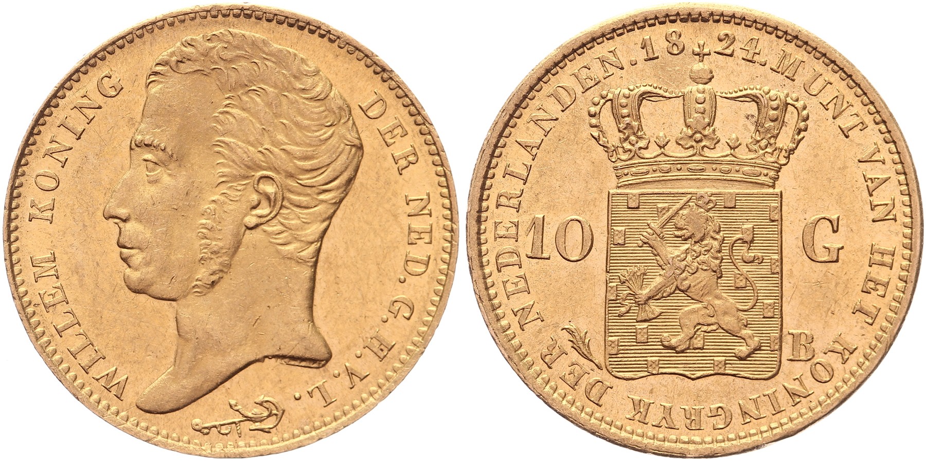 10 Gulden 1824 Brussel mmt. palmtak Sch. 190 Prachtig / FDC