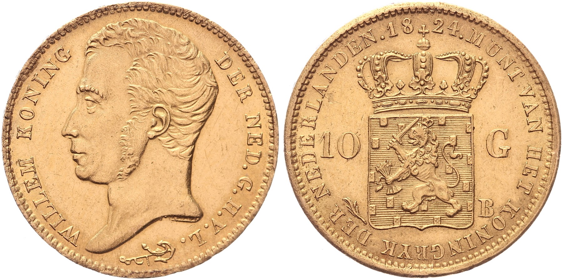 10 Gulden 1824 Brussel mmt. palmtak Sch. 190 Ruim prachtig