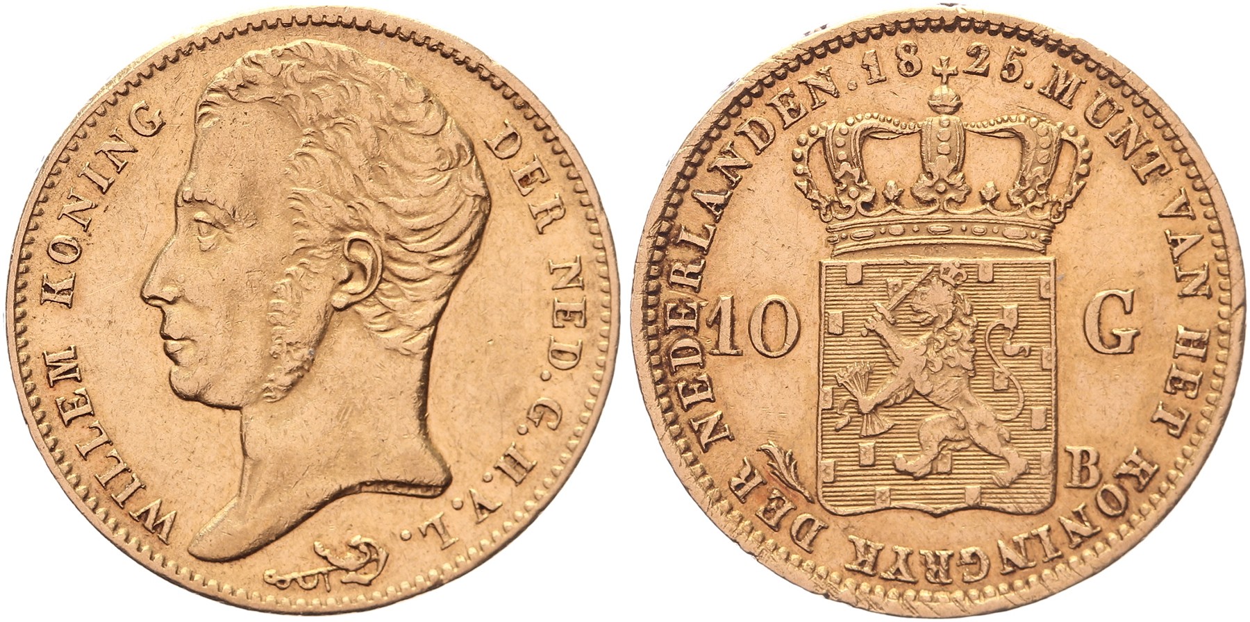 10 Gulden 1825 Brussel mmt. palmtak Sch. 191 Ruim zfr. / Bijna pr.