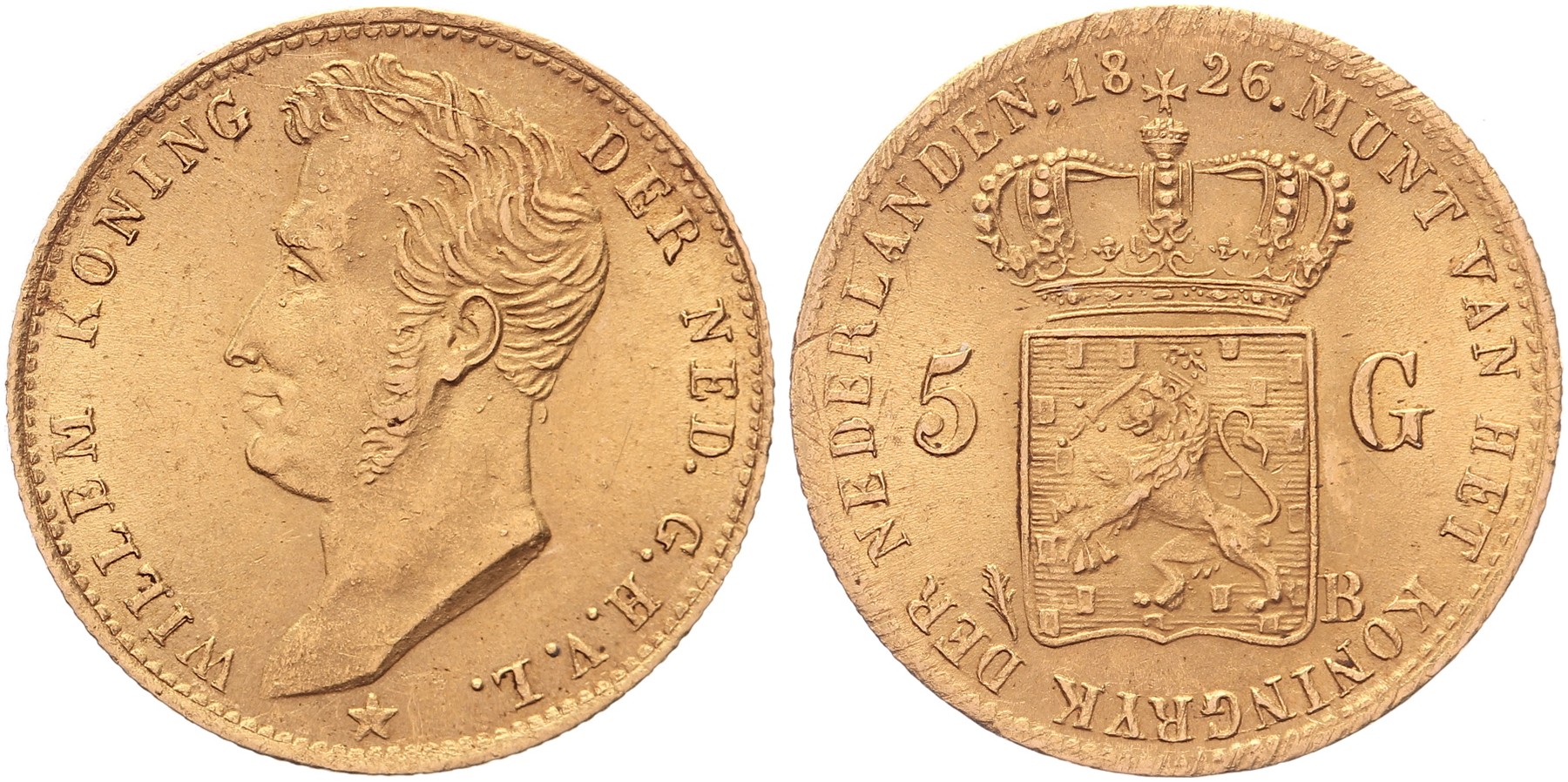 5 Gulden 1826 Brussel mmt. palmtak Sch. 197 Ruim pr. / Bijna FDC