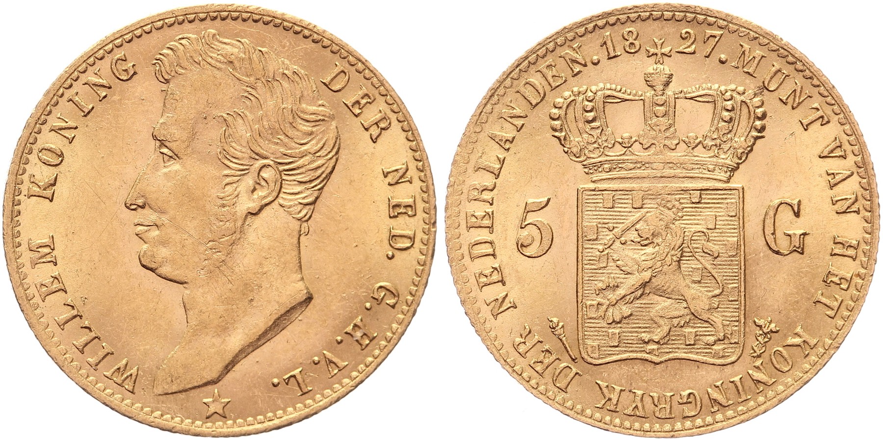 5 Gulden 1827 Utrecht mmt. fakkel Sch. 196. Justeerspoor over wang Prachtig / FDC