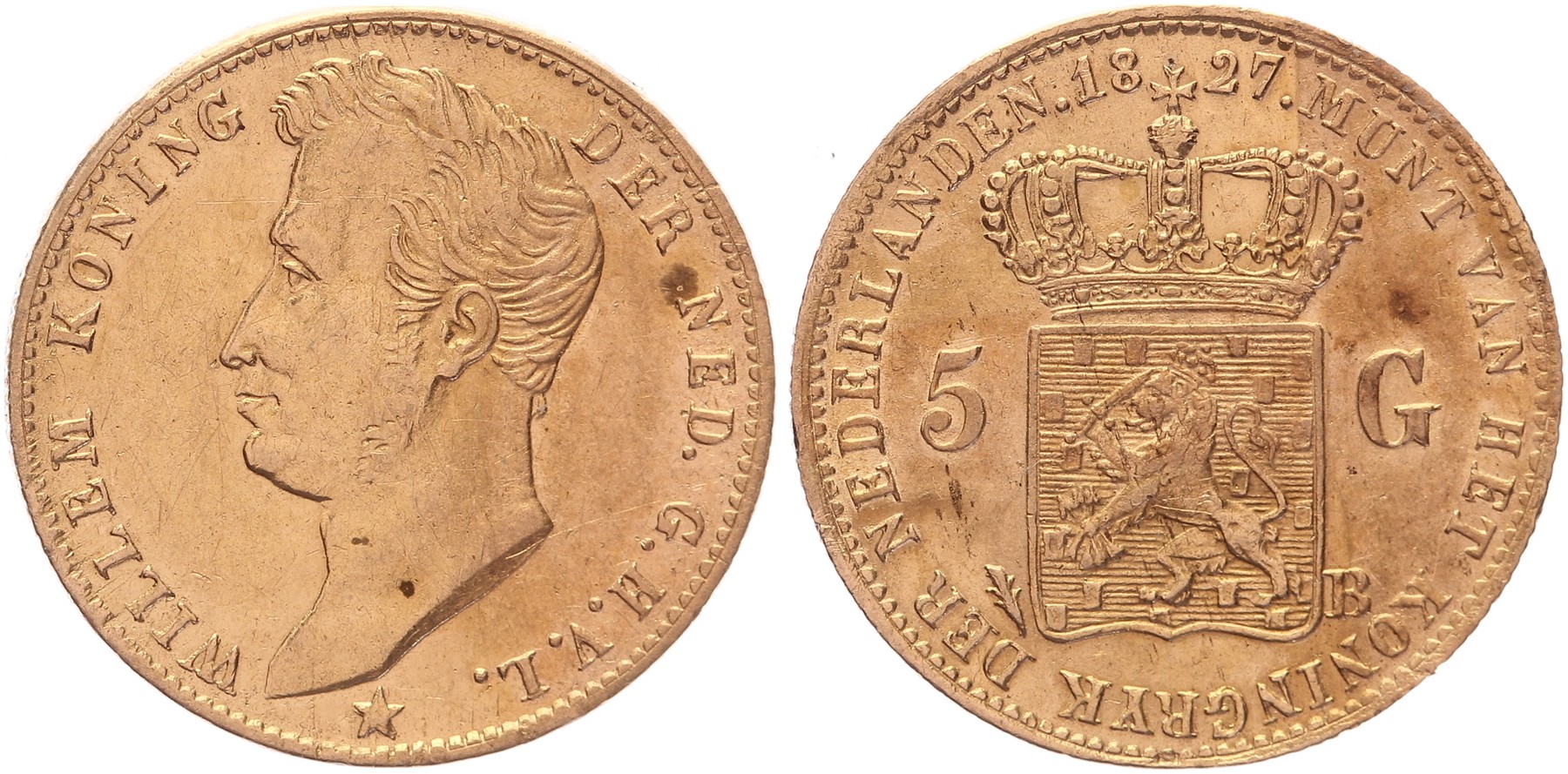 5 Gulden 1827 Brussel mmt. palmtak Sch. 198 Prachtig