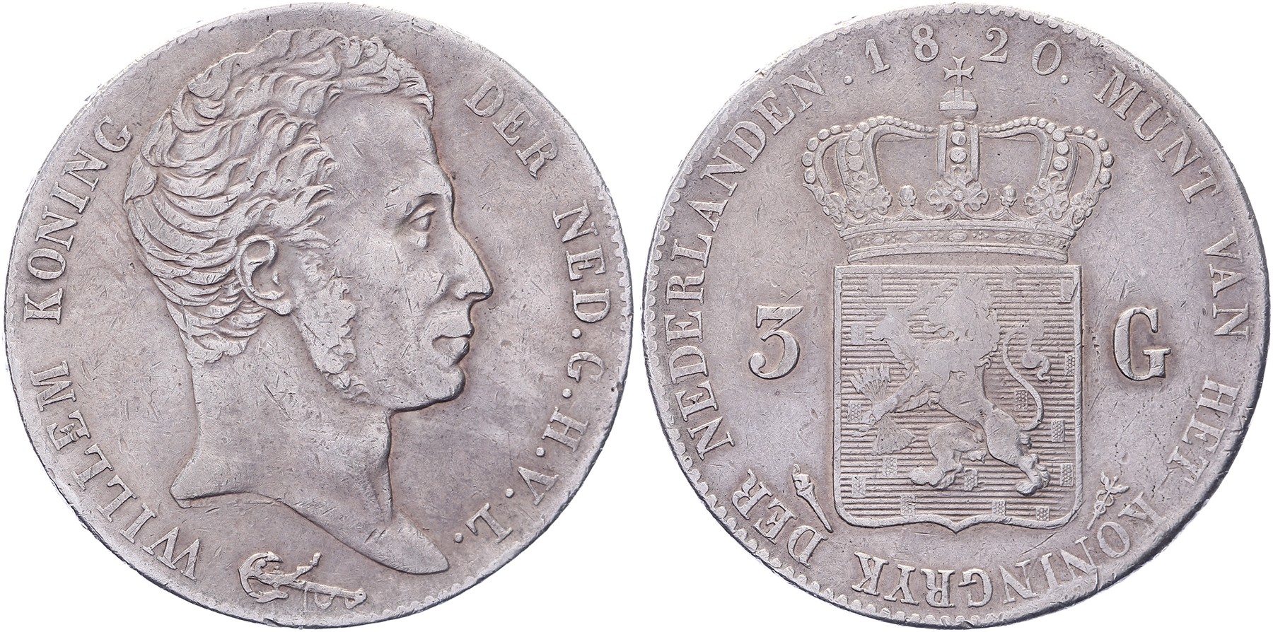 3 Gulden 1820 Utrecht mmt. fakkel Sch. 242 Ruim fraai / Bijna zfr.