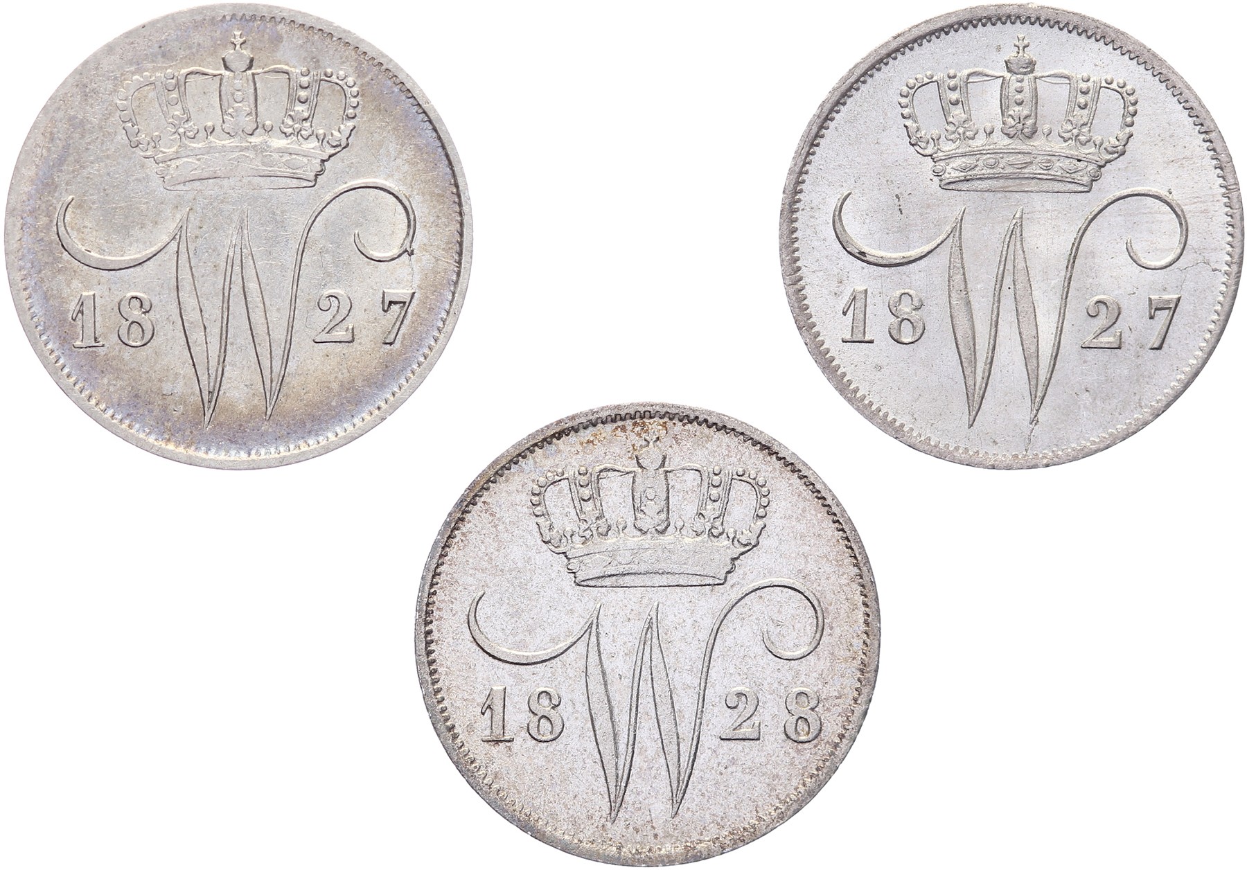 Lot (3) 10 Cents 1827 U, 1827 B en 1828 B Sch. 307, 312 en 308 Zeer fraai en beter