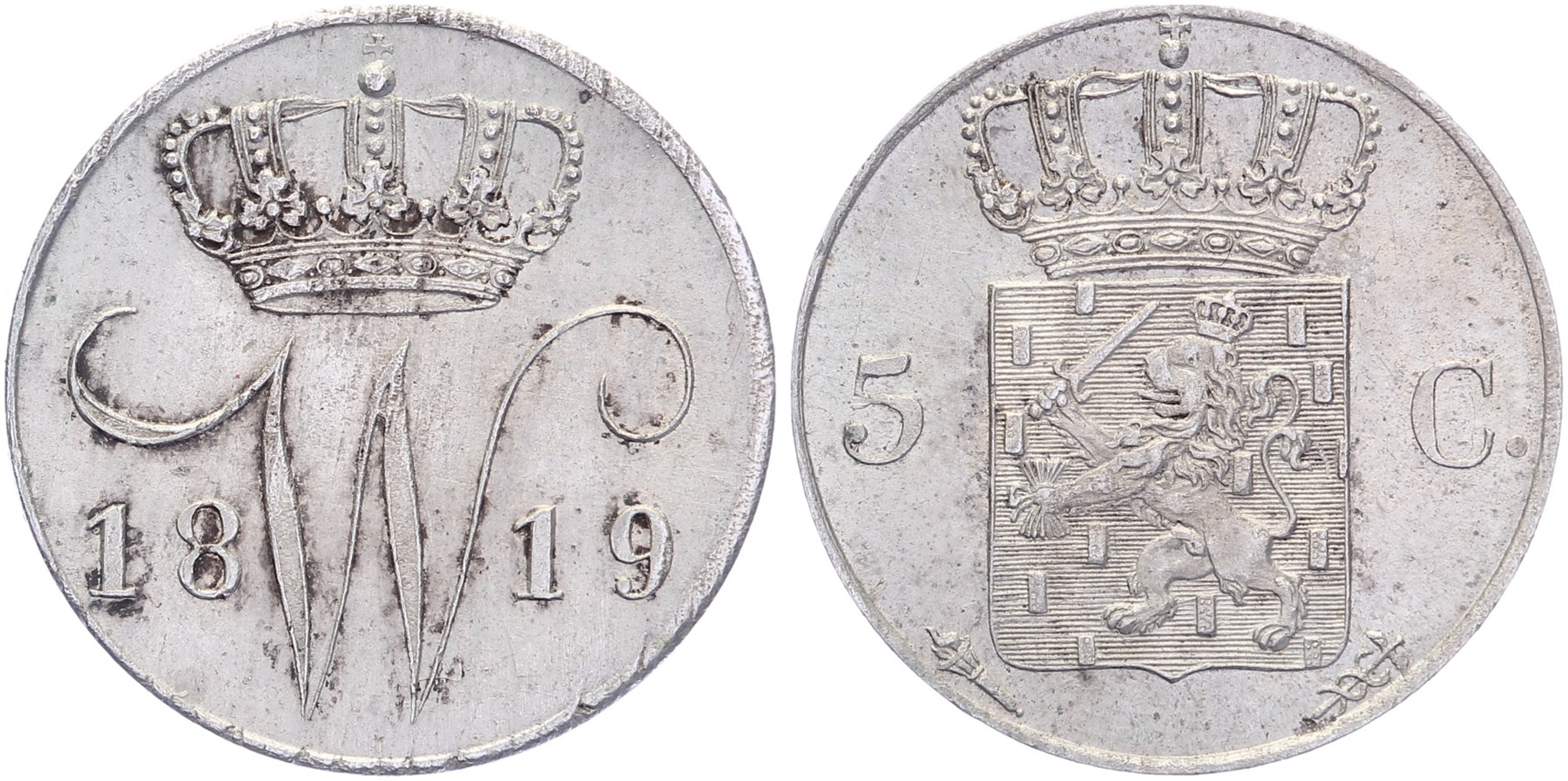 5 Cents 1819 Utrecht mmt. fakkel Sch. 315 Bijna prachtig