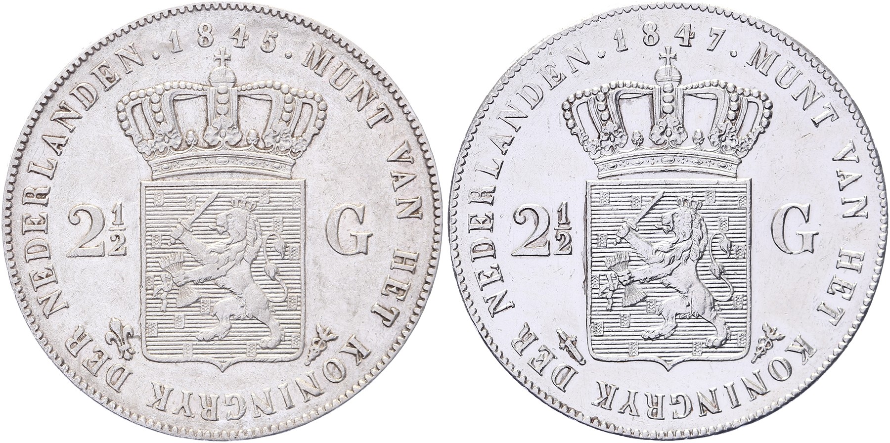Lot (2) Rijksdaalder 1845 en 1847 Sch. 510 en 514 Zeer fraai en beter