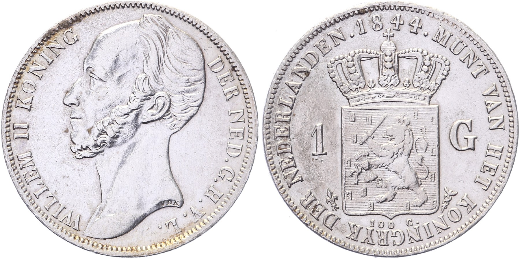 1 Gulden 1844 mmt. lelie Sch. 521 Ruim zeer fraai
