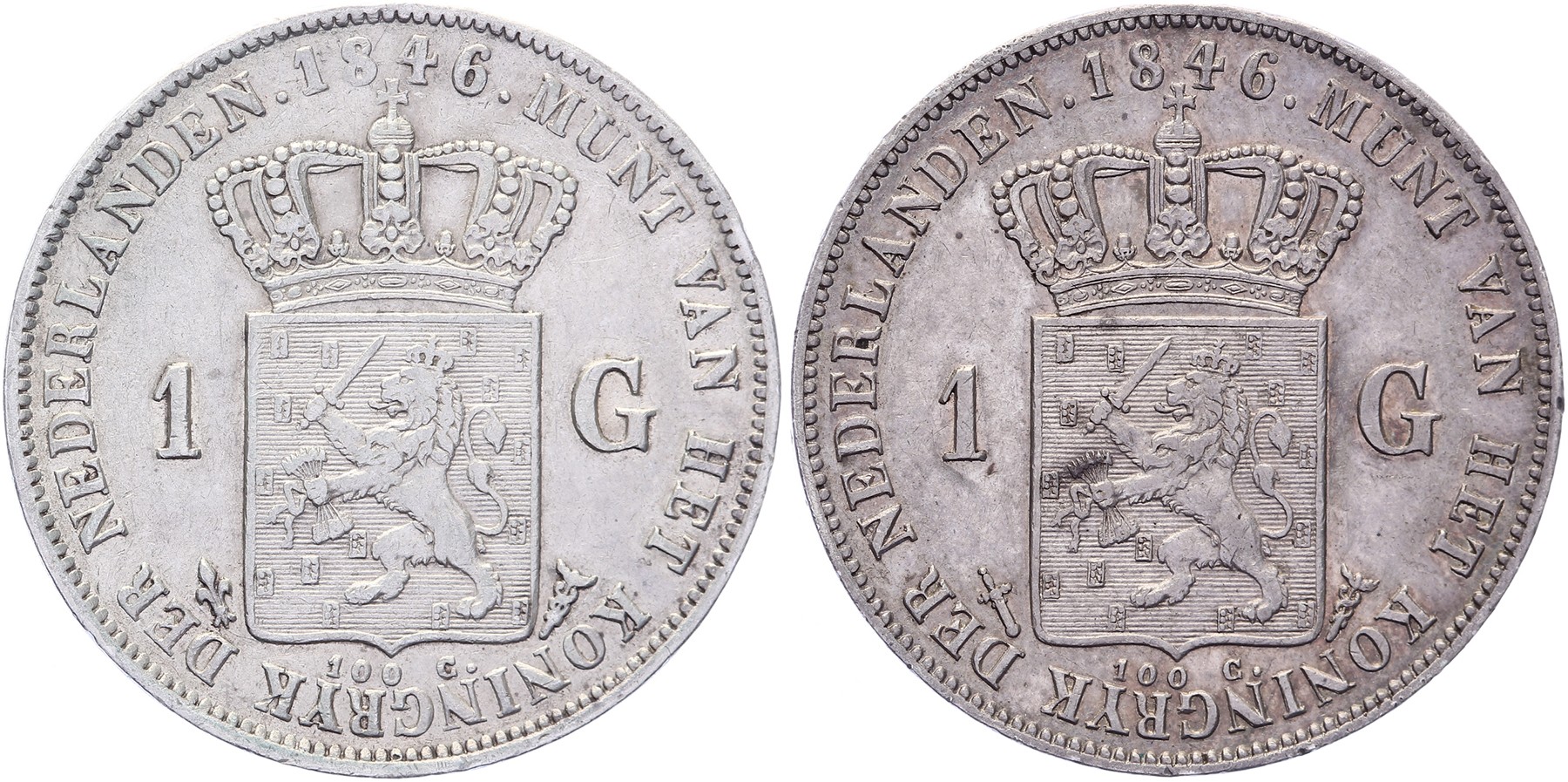 Lot (2) 1 Gulden 1846 mmt. lelie en zwaard Sch. 523 en 524. Beide types Zeer fraai