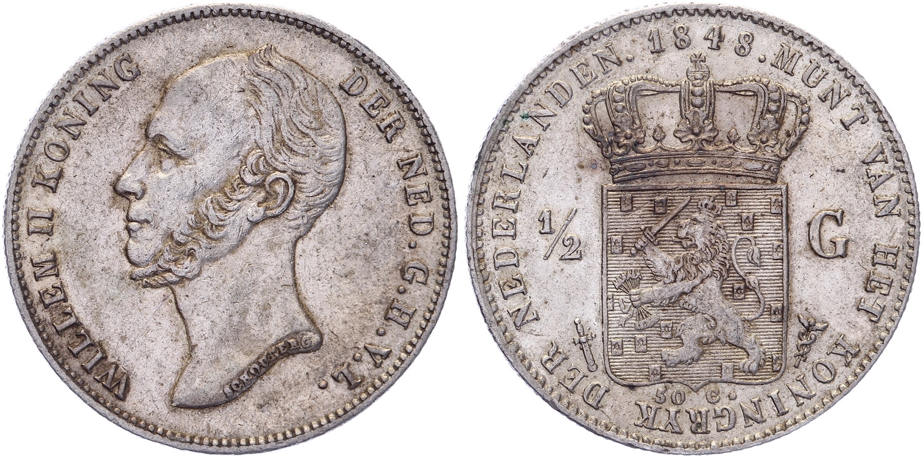 ½ Gulden 1848 mmt. zwaard Sch. 531 Ruim zeer fraai